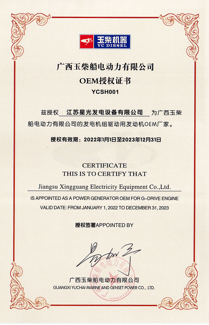 2023年玉柴OEM授權書