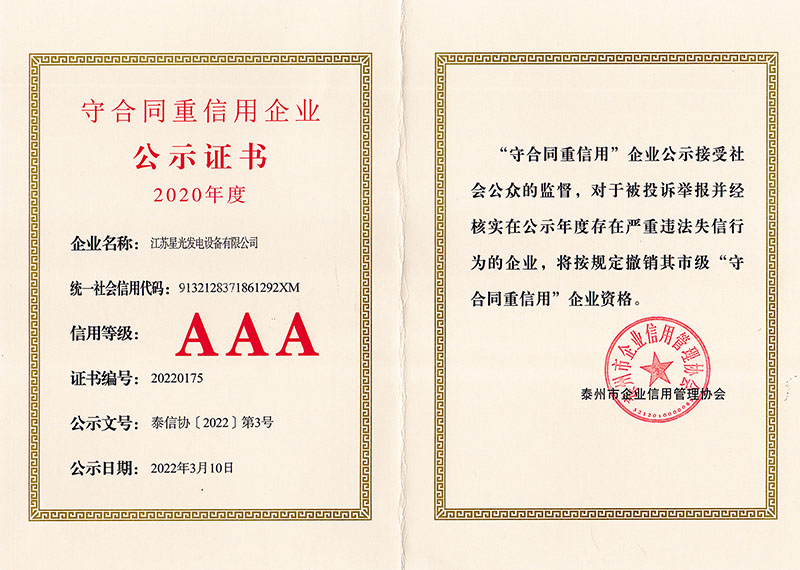 2022年AAA級標準化良好行為企業(yè)證書