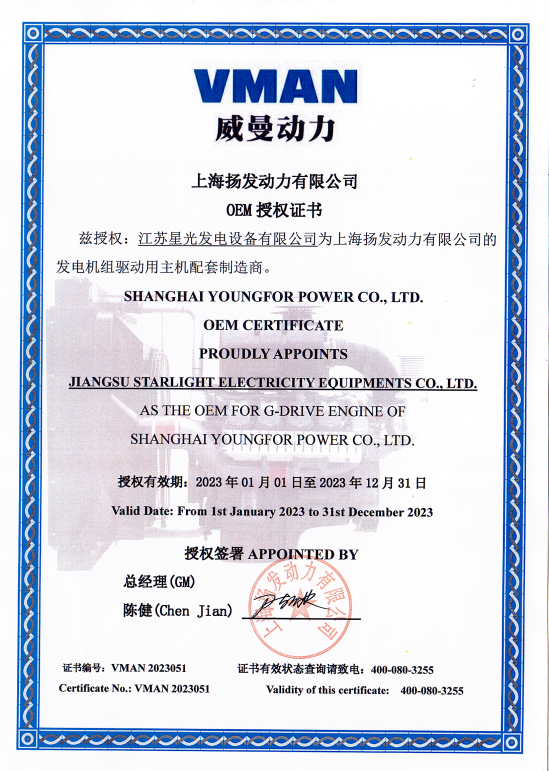2023年威曼動力OEM授權書
