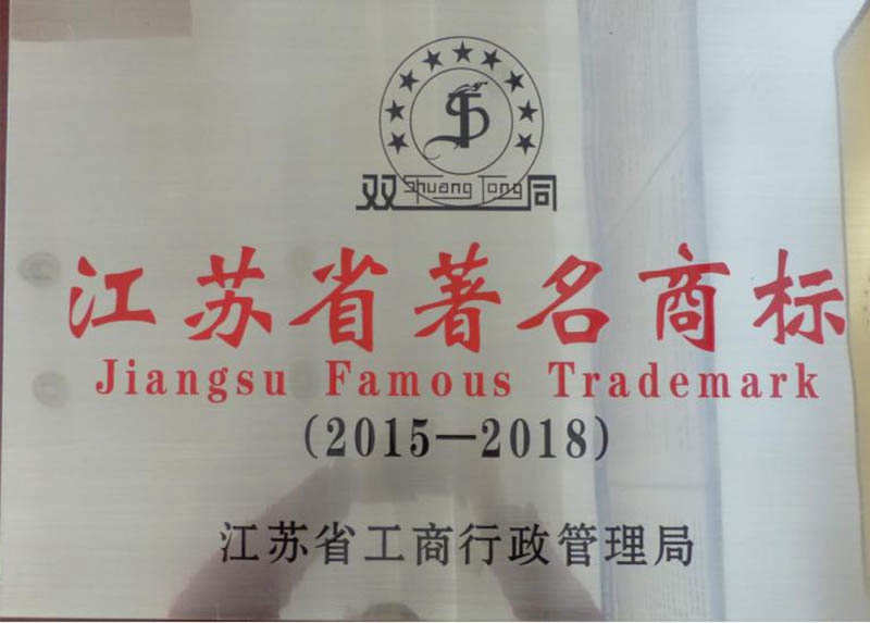 江蘇省著名商標(biāo)證書