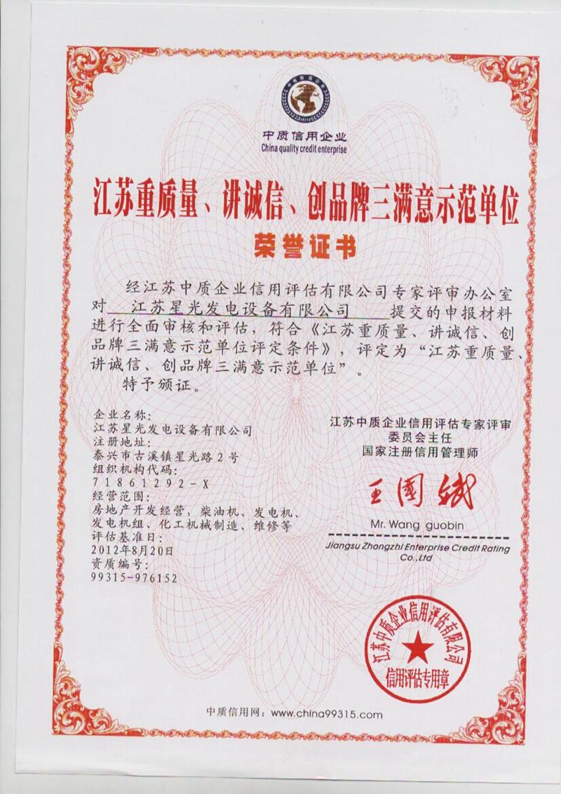 江蘇重質(zhì)量、講誠(chéng)信、創(chuàng)品牌三滿意示范單位榮譽(yù)