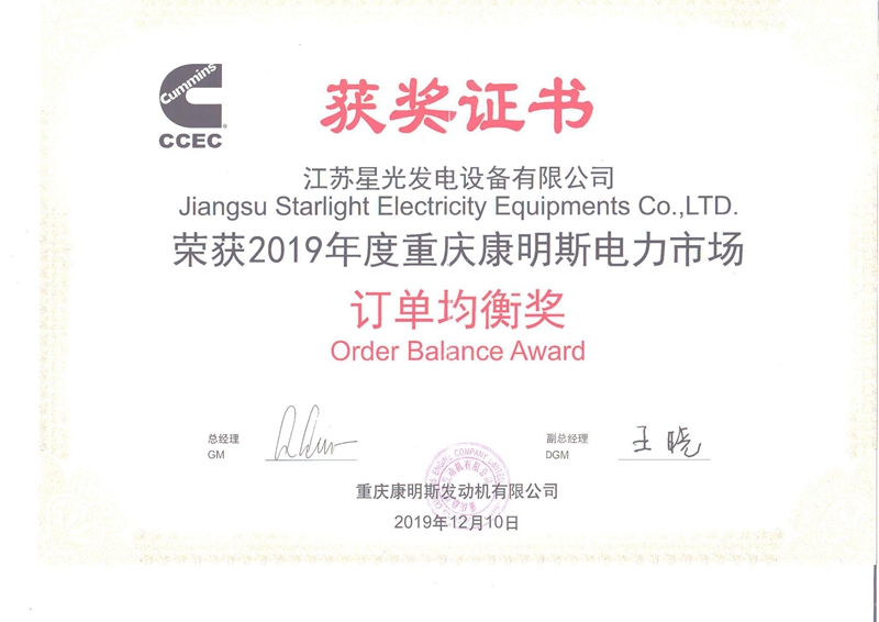 康明斯電力市場(chǎng)訂單均衡獎(jiǎng)