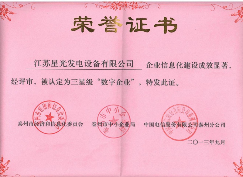 三星級(jí)“數(shù)字企業(yè)”榮譽(yù)證書、泰州市誠(chéng)信單位榮